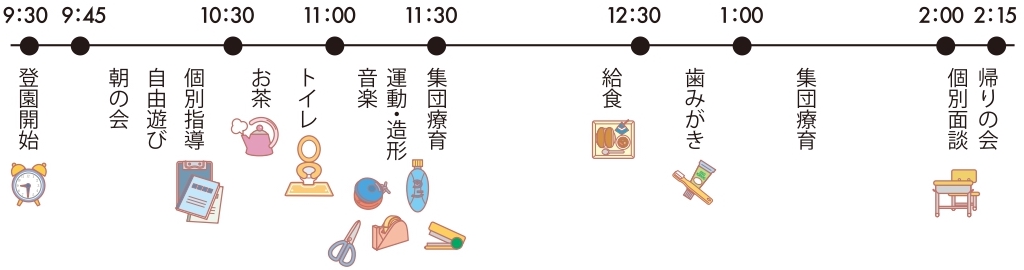 ●3〜5歳児 ●保護者分離 ●週1〜4日、隔週、月1回通園 ●1クラス1日8名〜10名